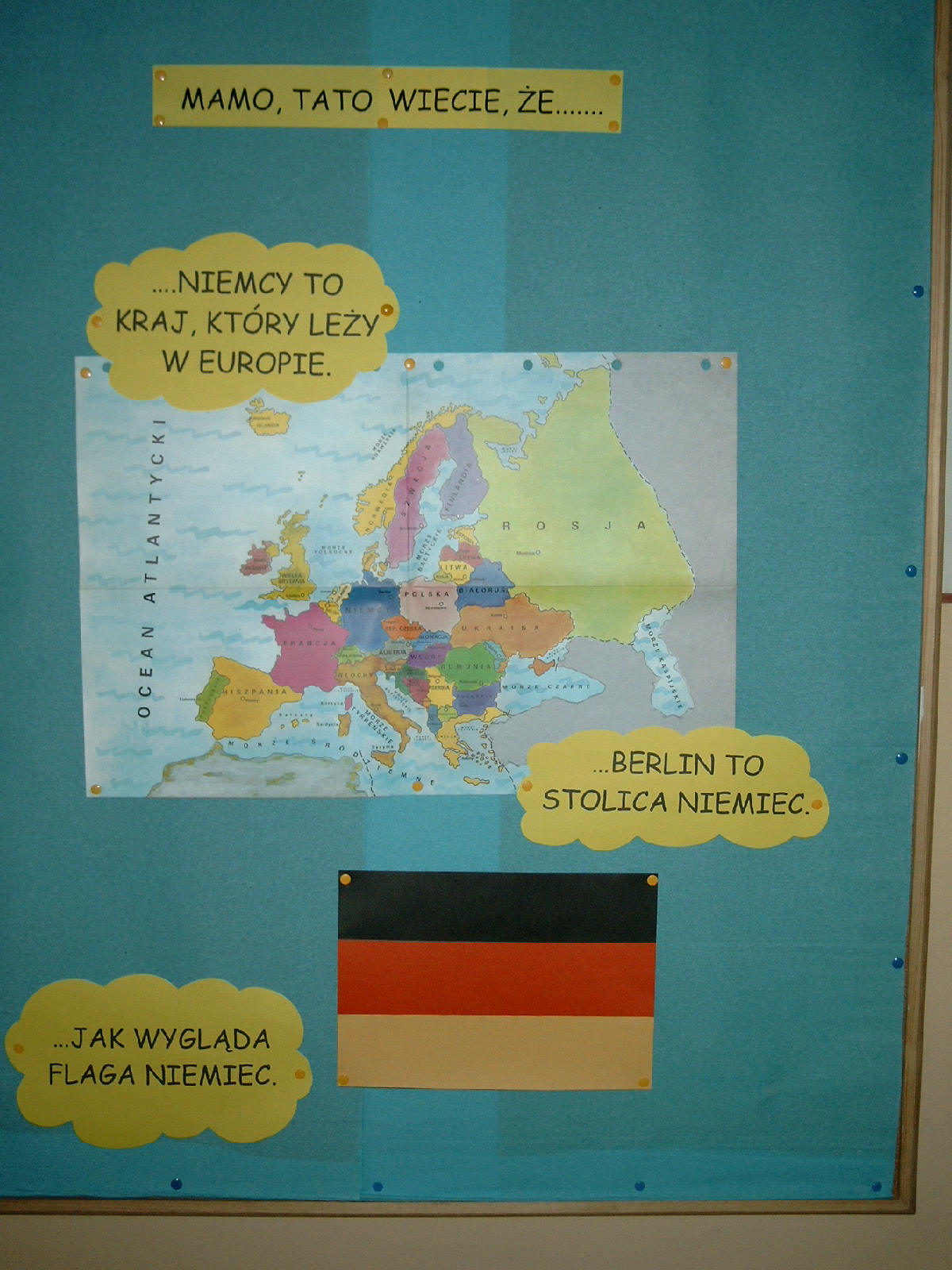 Od września 2003 roku działa w przedszkolu Klub Europejski, którego liderem jest mgr Teresa Kubiesa. W ramach pracy Klubu dzieci poznają wybrane kraje europejskie, ich kulturę, obyczaje itd. Każda z grup, na miarę swoich możliwości, poznała już Francję i Grecję. W tym roku szkolnym przybliżamy dzieciom Niemcy. Zdobyte wiadomości dzieci utrwalały biorąc udział w quizach, zajęciach otwartych dla rodziców oraz prezentując umiejętności wokalno – taneczne w „Biesiadzie Europejskiej Przedszkolaków” zorganizowanej przez Klub „Lider” skupiający dyrektorki rybnickich przedszkoli pod przewodnictwem pani dyrektor naszego przedszkola mgr Janiny Czaja. To, w jaki sposób nasi wychowankowie przybliżają sobie kraje europejskie przedstawiają zdjęcia i niektóre scenariusze zajęć.
