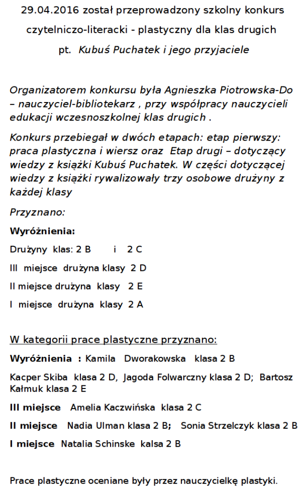 Wyniki konkursu plastycznego