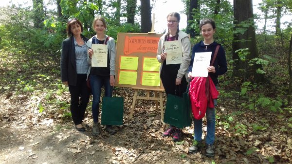 Dnia 8.05.2018r. odbył się w Leśniczówce w Kłokocinie XVII konkurs Matematyczno-Przyrodniczy pt: „Leśne podchody”. Naszą szkołę reprezentowała drużyna w składzie: Aleksandra Pander, Zuzanna Kralka i Maja Kaczmarek. Uczennice miały pokonać 10 stanowisk, na których rozwiązywały zadania z matematyki i przyrody. Dodatkowo wędrując przez las wypełniały karty pracy, rozpoznawały rośliny, grzyby i zwierzęta żyjące w lesie. Wykazały się szeroką wiedzą przyrodniczą i pokonały 15 drużyn zebranych z całego powiatu. Zdobyły I miejsce. Gratulujemy!