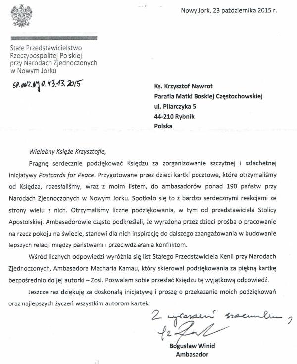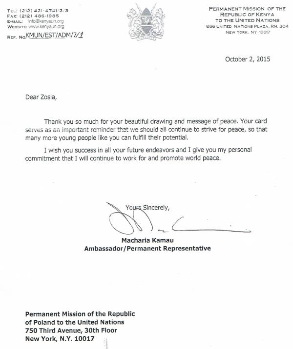 Zjednoczonych; ambasador Kenii zwraca się w swym liście bezpośrednio do