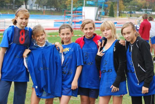 W piątkowe południe 9 października na terenie kąpieliska „RUDA” w Rybniku odbyły się rejonowe sztafetowe biegi przełajowe. Po biegach szkół ponadgimnazjalnych i gimnazjalnych na trasę biegu wyruszyły sztafety szkół podstawowych , wśród nich reprezentacja naszej szkoły. Jako pierwsze na linii startu ustawiły się dziewczyny. Zespół naszej szkoły w składzie: Beata Leżoch, Marta Kurczok, Weronika Chuchla, Monika Michalska, Sandra Kostka i Agnieszka Lewandowska, po słabszym początku – po 1 zmianie zajmował miejsce 7, na kolejnych okrążeniach przesuwał się do przodu i po 2 zmianie plasował się na miejscu 3-4. Tą pozycje uczennice klasy sportowej szóstej utrzymywały przez kolejne 3 zmiany (każda z dziewczyn miała do pokonania 2 okrążenia po 400 metrów każde). Na ostatniej zmianie działy się rzeczy niesamowite. Nasza uczennica wyprowadziła w ciągu 1 okrążenia naszą sztafetę na 1 miejsce, wyprzedzając na dystansie aż 3 zawodniczki. Jednak zbyt szybkie tempo biegu dało o sobie znać i dosłownie na ostatnich 100 metrach naszą słabnącą z metra na metr biegaczkę wyprzedziły 3 sztafety i nasza szkoła zakończyła bieg na 4 miejscu ( 3 miejsce w Rybniku) na 12 startujących sztafet. A do podium zabrakło tak niewiele.