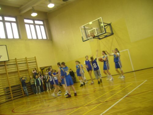 W spotkaniu rejonowym, które rozegrane zostało w naszej szkole 11 kwietnia Mistrz Rybnika czyli nasza szkoła podejmował Mistrza Żor – Szkołę Podstawową nr 5. Po jednostronnym pojedynku rybniczanki zdeklasowały swoje rywalki wygrywając 120:8. Po I połowie na tablicy wyników widniał wynik 75:0!. W meczu tym punkty dla naszej szkoły zdobyły: Ania Gołucka 23, Martyna Saczewska 18, Sara Sołowczuk 15, Beatrycze Bolik 14, Oliwia Bobrowska 12, Kasia Mastalerz 12, Joanna Parulska 8, Magda Smyrdek 8, Klaudia Karczewska 8, Dominika Bernat 2, Roksana Kaptur 0. Trenerem zespołu jest Marcin Troszka.
