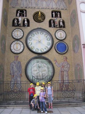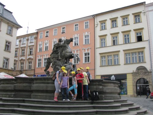 W drodze do Českiej Třebovej na Morawach zatrzymaliśmy się w Ołomuńcu. Najbardziej podobał się nam zegar astronomiczny na rynku. Podeszliśmy do niego akurat na chwilę przed tym, jak zaczął wydzwaniać kuranty, a postaci umieszczone nad licznymi tarczami zegarowymi zaczęły się poruszać. Na koniec wielki złoty kogut oznajmił głosno, że jest właśnie południe! Podziwialiśmy też piękne fontanny i zabytkowy Kościół Matki Boskiej Śnieżnej.